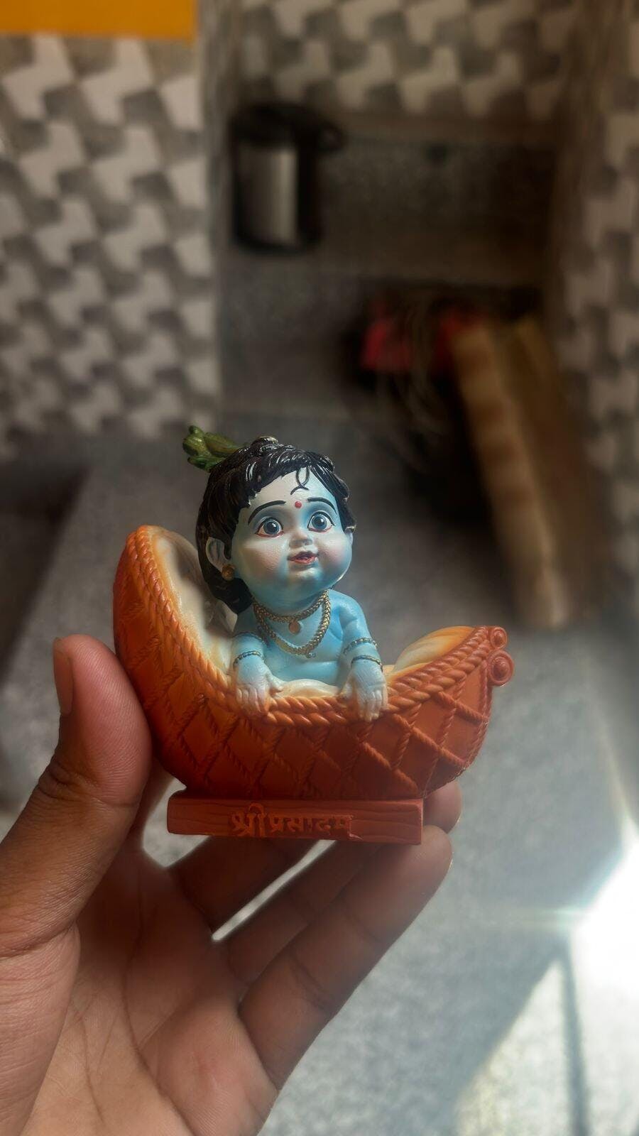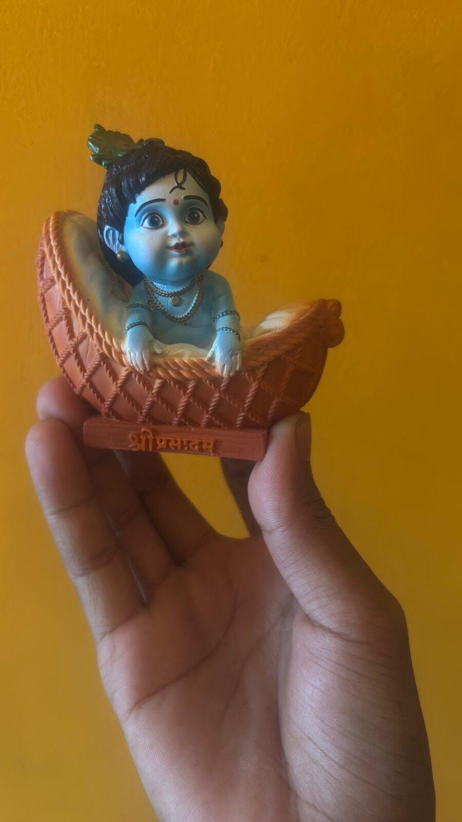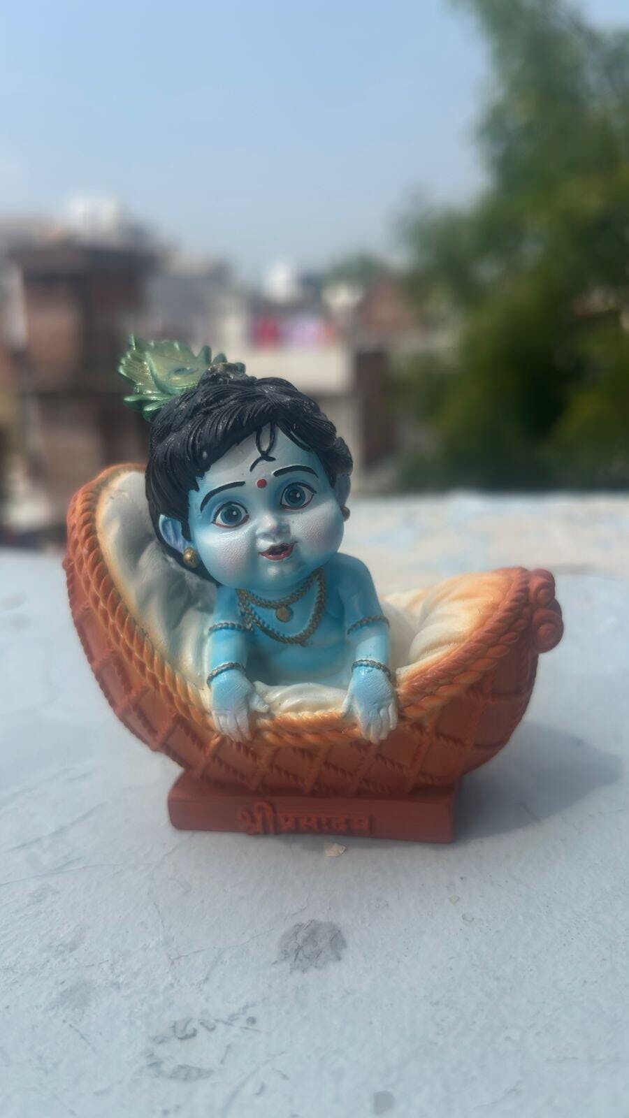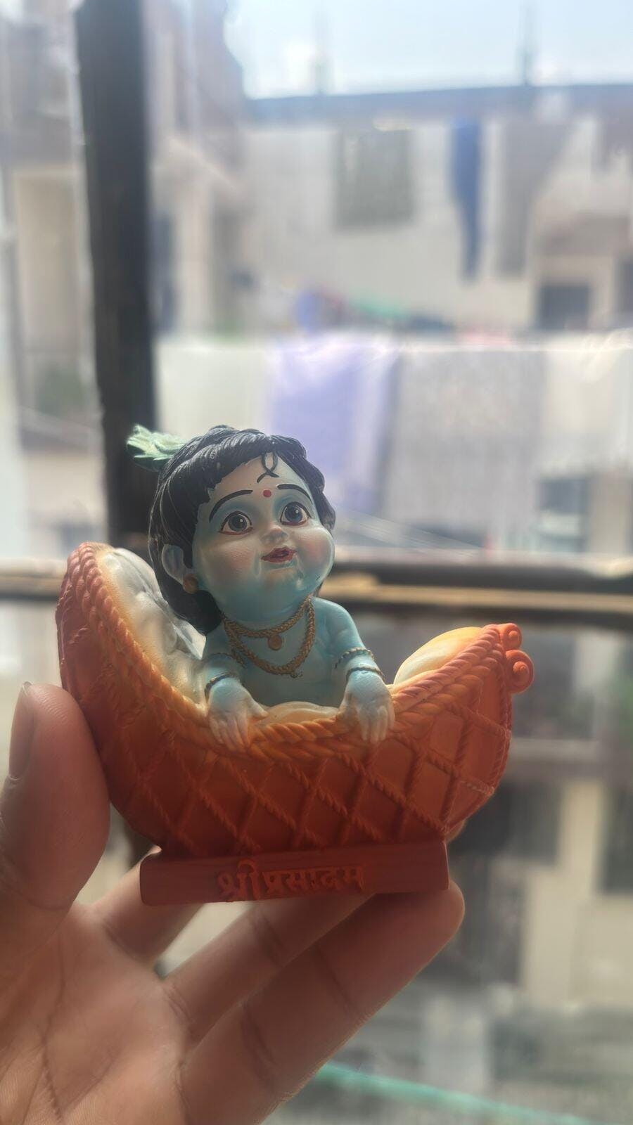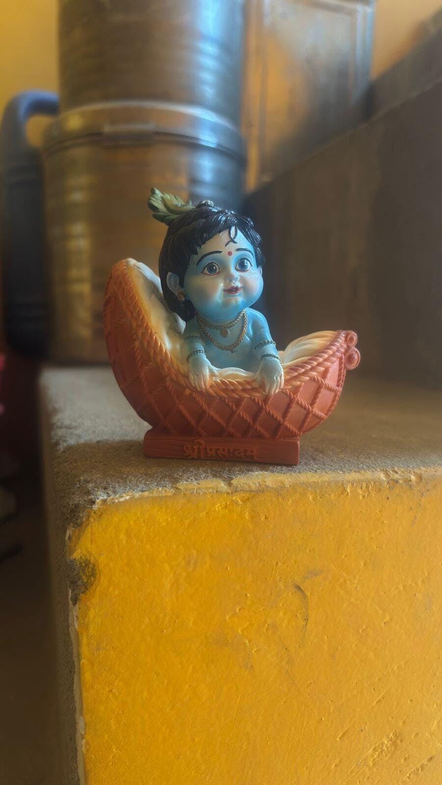 - Design Features: Intricately designed idol depicting Bal Krishna as the adorable Makhan Chor, capturing the playful innocence and divine energy of Lord Krishna in his infant form